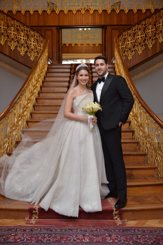 Gelinlik ve damatlık tercihini şıklığıyla dikkat çeken Vakko Wedding’den yapan çift, sade ve zarif tarzlarıyla davetlilerden tam not aldı.