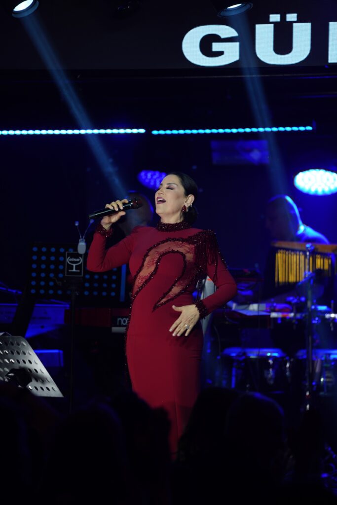 Türk pop müziğinin güçlü ve zamansız sesi Aşkın Nur Yengi, dün akşam Günay Restaurant sahnesinde adeta rüzgâr gibi esti. Zarafeti ve enerjisiyle sahneye çıkan ünlü sanatçı, kırmızı elbisesi ve yıllara meydan okuyan sesiyle dinleyicilerine unutulmaz bir müzik şöleni yaşattı.
